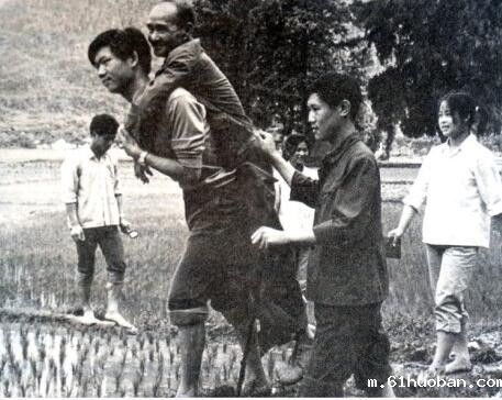 农林系谭涤教授行走不便,由学生背到田间授课。(资料照片)