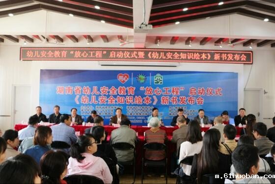 2017年10月26日上午,由省紧急救援协会、省民办教育协会与用心教育集团共同发起,长沙市关工委、市民办教育协会和市安全教育促进中心承办,岳麓区教育局和岳麓区十五幼儿园、株洲紧急救援协会协办的湖南省幼儿安全教育放心工程启动仪式暨《幼儿安全知识绘本》新书发布会在长沙正式启动。省军区原副政委、省紧急救援协会会长魏永景将军,国家教育咨询委员会委员、省教育厅原党组书记、厅长、省民办教育协会会长张放平,省民办教育协会常务副会长兼秘书长任晓锋,长沙市人大原副主任、市关工委常务副主任刘耀杰,长沙市民办教育协会副会长兼秘书长李俊年,长沙市岳麓区教育局副局长周利群,湖南大学教授、湖南大学期刊与出版社书记、社长雷鸣,湖南教育音像电子出版社总支书记、总编辑伍国保,省紧急救援协会常务副会长、省民办教育协会安全与健康工作部执行主任、省民办教育协会培训分会副会长、用心教育集团董事长虞贵明,省紧急救援协会常务副会长、株洲市青少年军校总校长、株洲市紧急救援协会主任文勇等领导及有关安全教育专家、媒体朋友、长沙市部分幼儿园负责人和岳麓幼儿教育集团第十五幼儿园老师和孩子、用心安全教育促进中心老师等共两百余人参加了启动仪式。